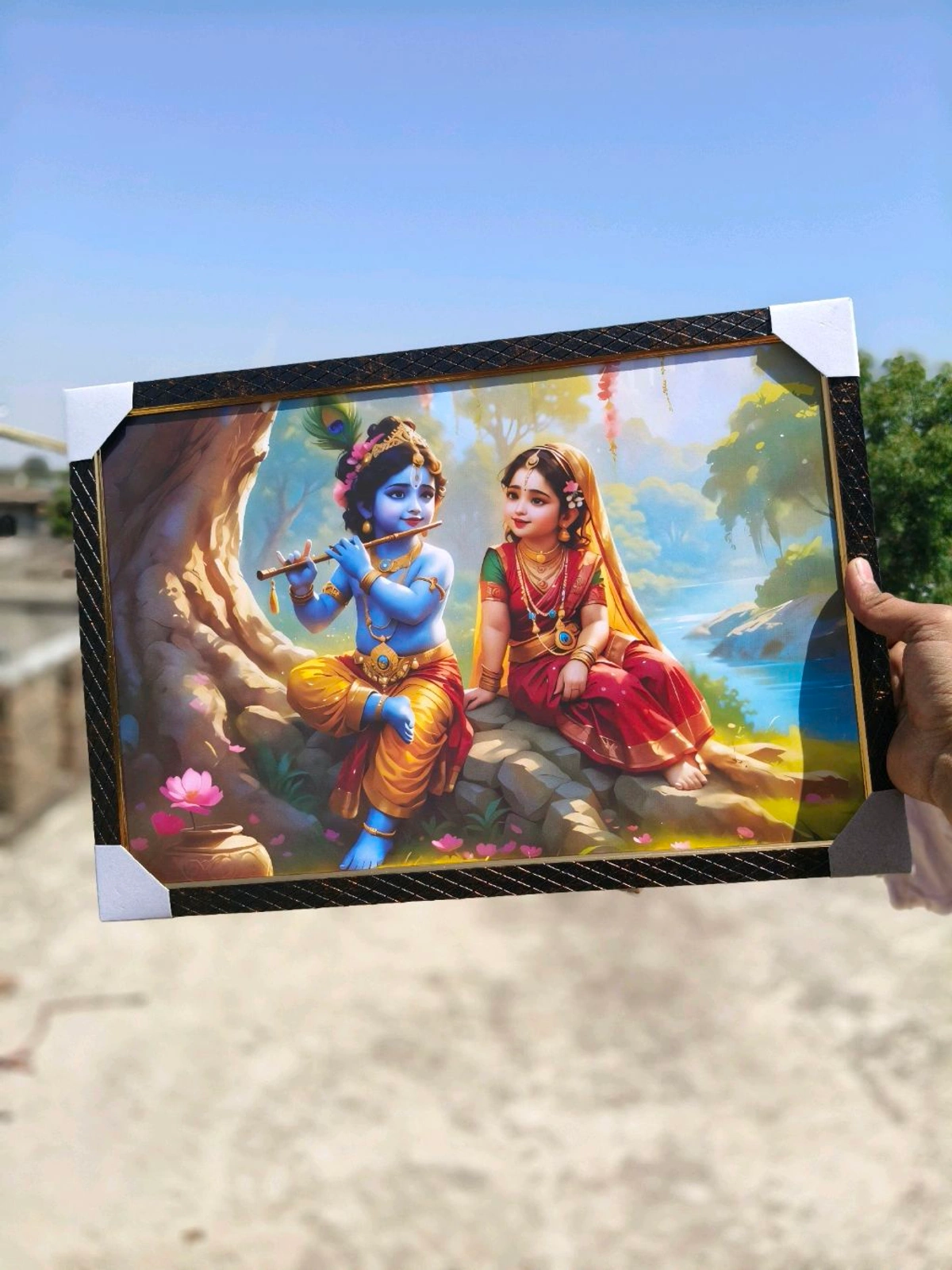 Radha Krishna Oil Paint Photo Frame